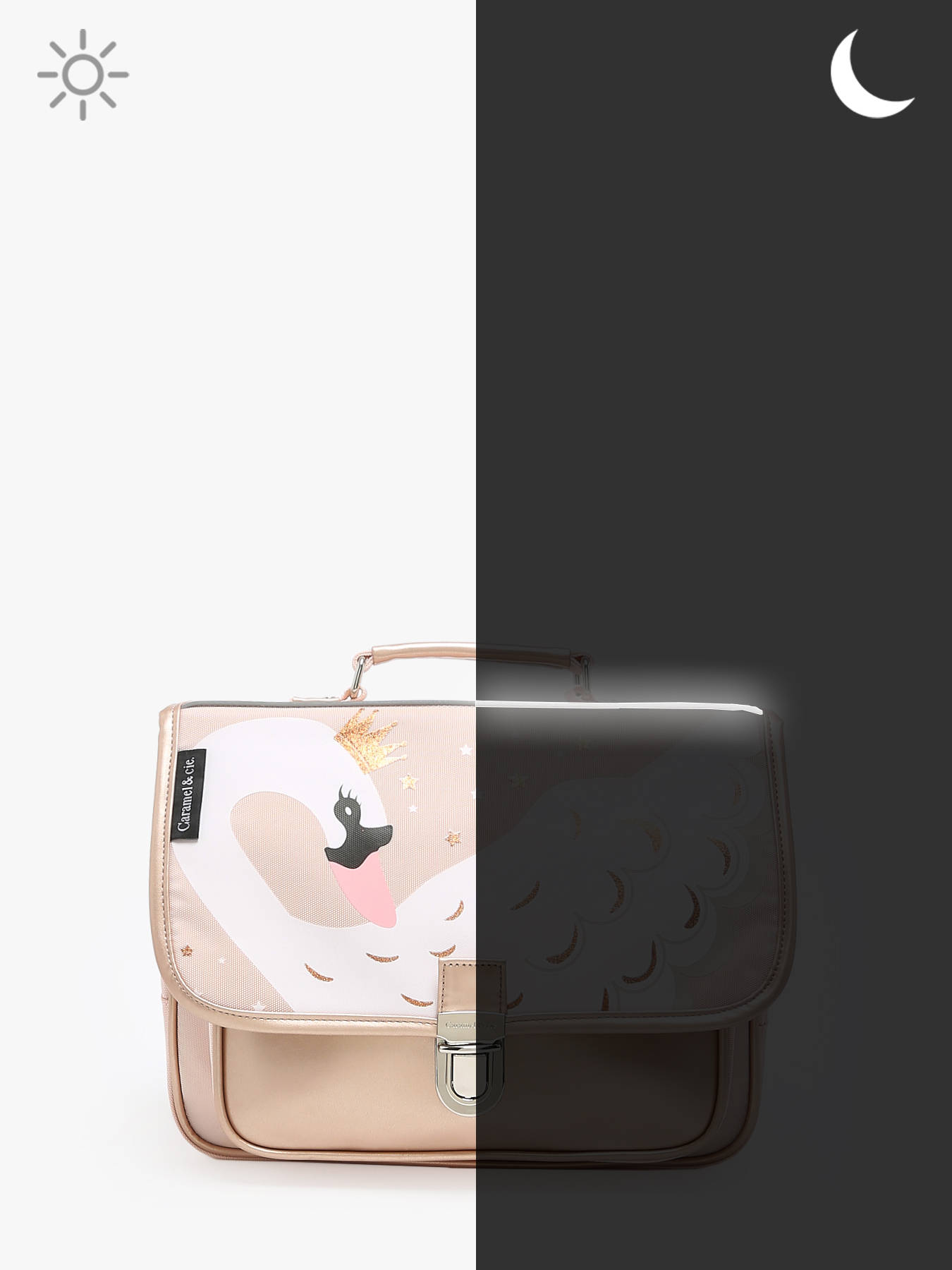 Boekentas 1 compartiment van de lijn Boheme van Caramel et cie, om ofwel in de hand ofwel op de rug te dragen.