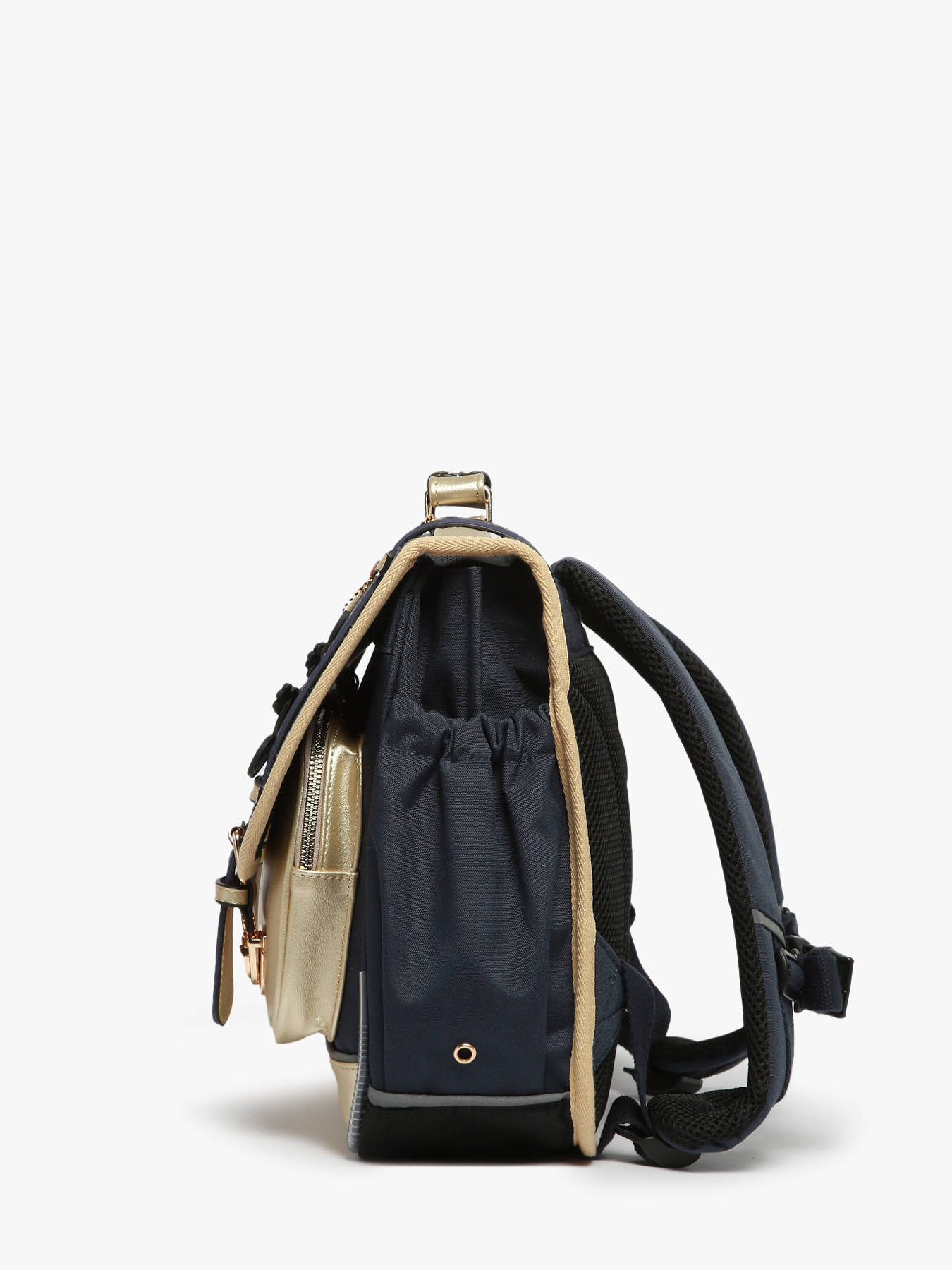 35 cm - 12 liter - 1 kg ~ Deze schooltas uit de Vintage Fantasy collectie van het merk Caméléon heeft een breedte van 35 cm. Ideaal voor de kleuterklas en het eerste jaar van de basisschool! Dit model heeft een duidelijke vintage look, dankzij de twee voorvakjes en de riempjes met gesp. Dit model beschikt over twee compartimenten, die schriftjes (24x32 cm) en andere kleine spulletjes kunnen bevatten. Onder de overslagflap bevindt zich ook een uniek opbergvak, met daarin een gratis liniaal! De twee vakjes met rits vooraan zijn ideaal om een snack of zakdoek in op te bergen. Dit model beschikt ook over een naamlabel, en kan makkelijk gesloten worden dankzij een dubbel kliksysteem. Voor optimaal comfort zijn de rugzijde en schouderbandjes extra gewatteerd. Dankzij enkele reflectoren kan uw kind zich ook veilig in het verkeer begeven. Vintage op z'n mooist!