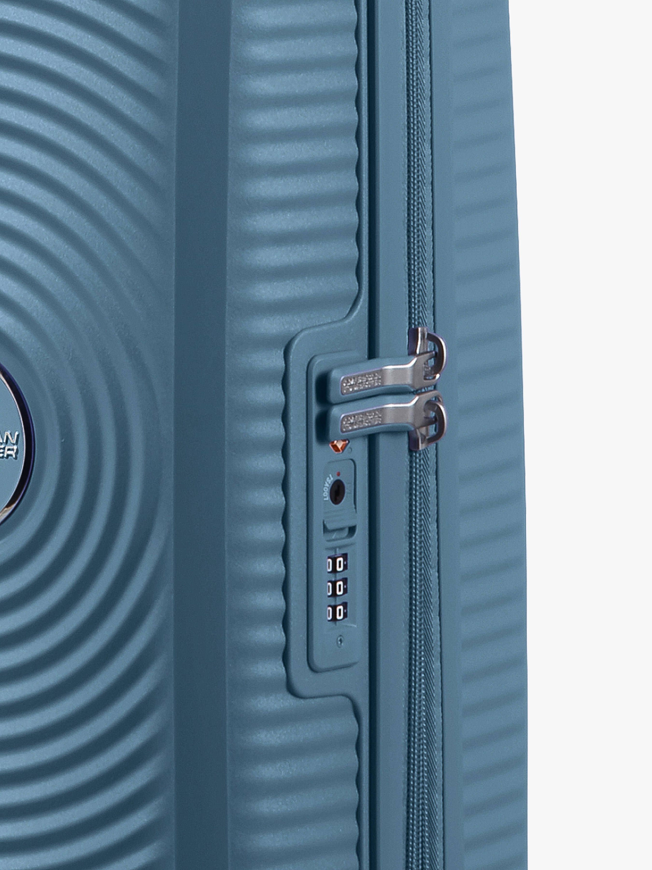 Koffer uit de Soundbox-lijn van American Tourister. De koffer van Cristiano Ronaldo. Ideaal formaat voor een weekendje weg of als handbagage. Binnenin is de koffer opgesplitst in twee compartimenten met riemen aan elke kant. Heel stevig en licht, vervaardigd van polypropyleen. Geniet van een maximum aan mobiliteit en comfort dankzij de vier dubbele wieltjes, de twee draaggrepen en het regelbare trolleysysteem. Veilig door het cijferslot systeem. Ook uitgerust met een TSA systeem conform de Amerikaanse wetgeving.