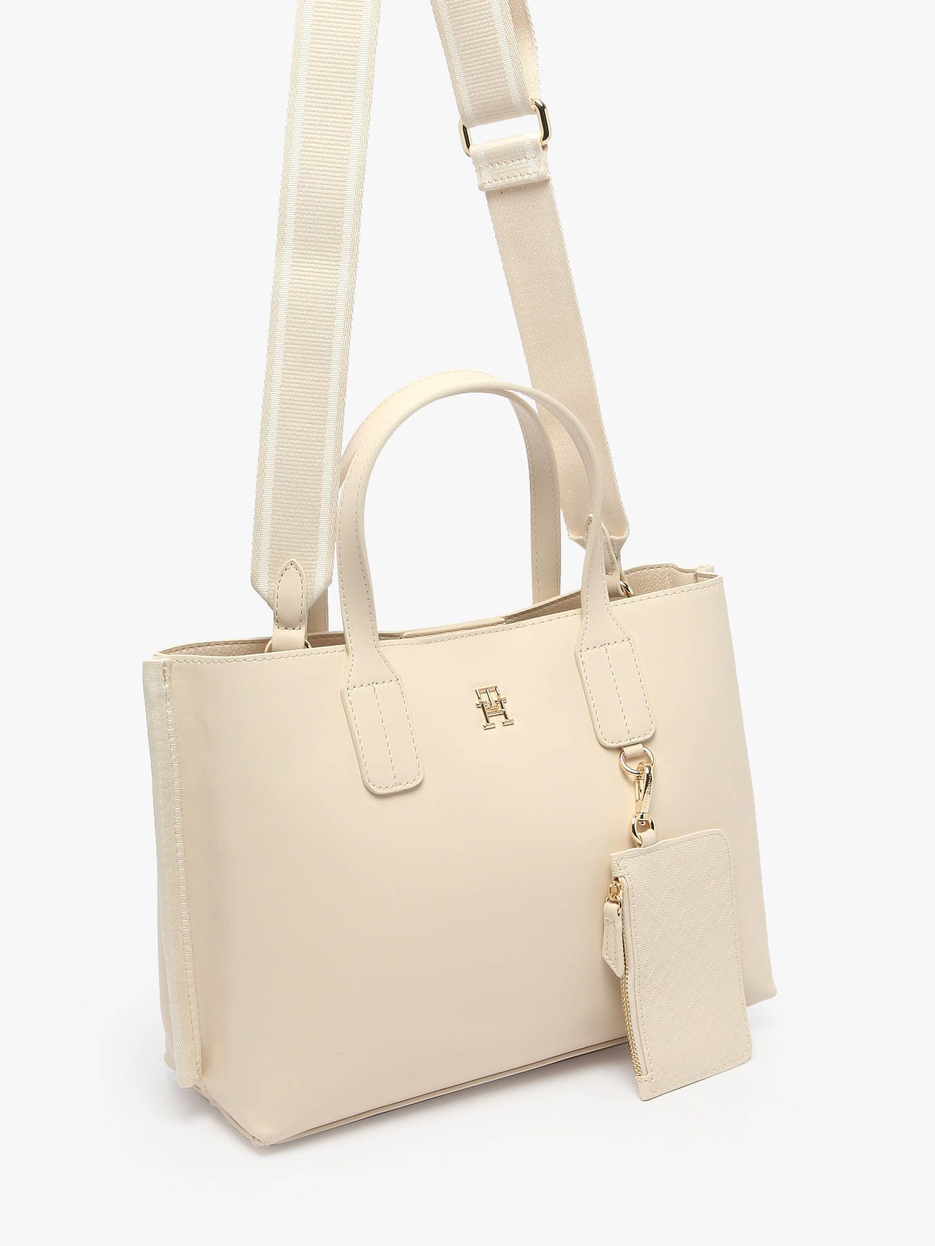 Deze handtas van TOMMY HILFIGER, gemaakt van gecoat canvas, is de perfecte combinatie van stijl en functionaliteit. Hij heeft een flap met magnetische sluiting, voor snelle en veilige toegang tot je spullen. Binnenin bevat de tas een ritsvak en een scheidingsvak, zodat je je essentials in twee ruime compartimenten kunt organiseren. De hengelhoogte van 12 cm zorgt voor comfortabel dragen in de hand, terwijl de verstelbare en afneembare schouderriem het mogelijk maakt om de tas ook crossbody te dragen. Deze tas, met zijn chique en moderne ontwerp, is ideaal om een elegante en praktische vleugje aan je dagelijkse outfits toe te voegen.