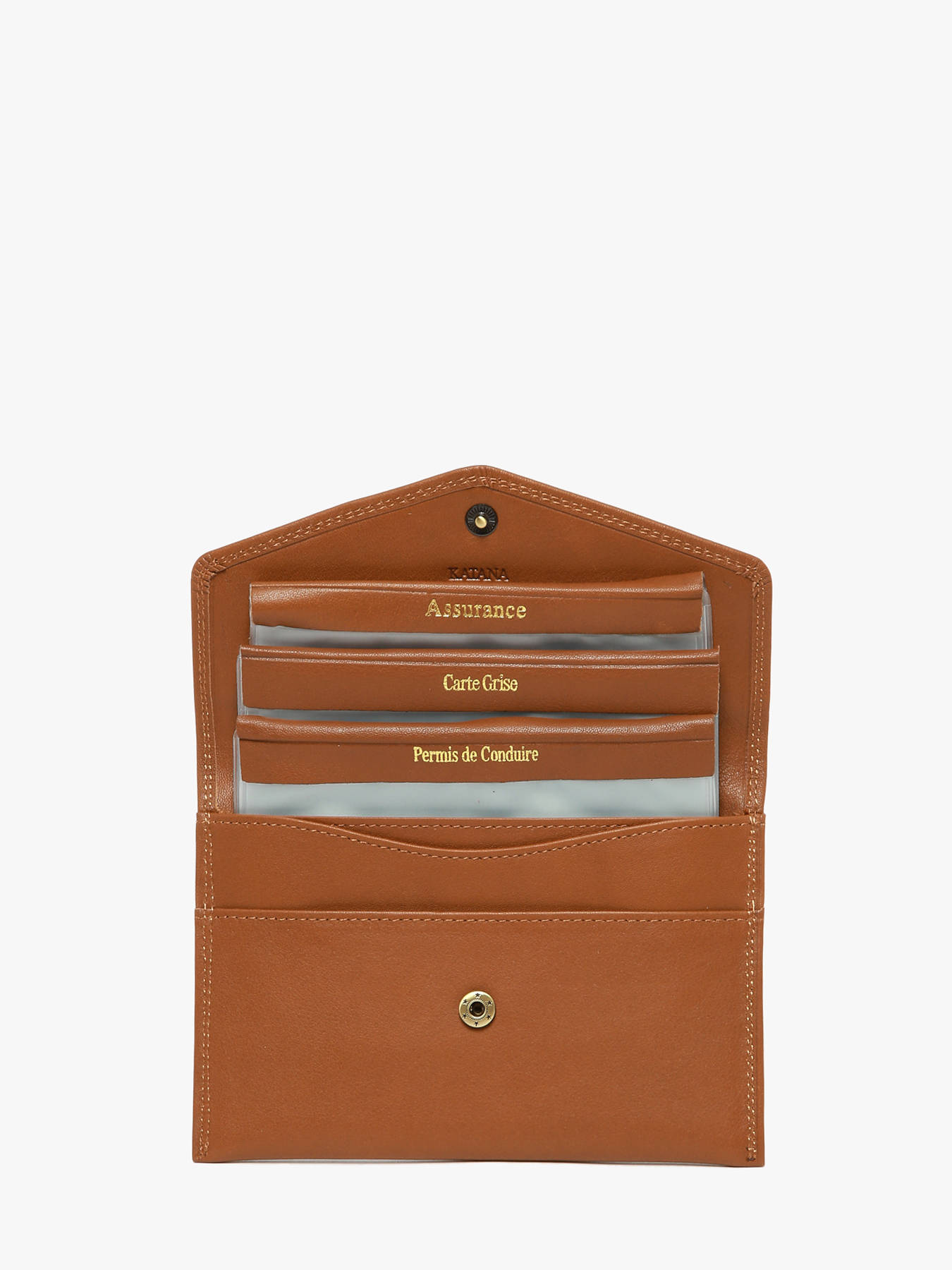 Handige lederen papierhouder van het merk Katana. Het model laat zich sluiten met flap en drukknop en is van verschillende plastiekjes voorzien. Ideaal voor het opbergen van belangrijke documenten. Verder zijn er ook nog 2 gewone opbergvakken.
