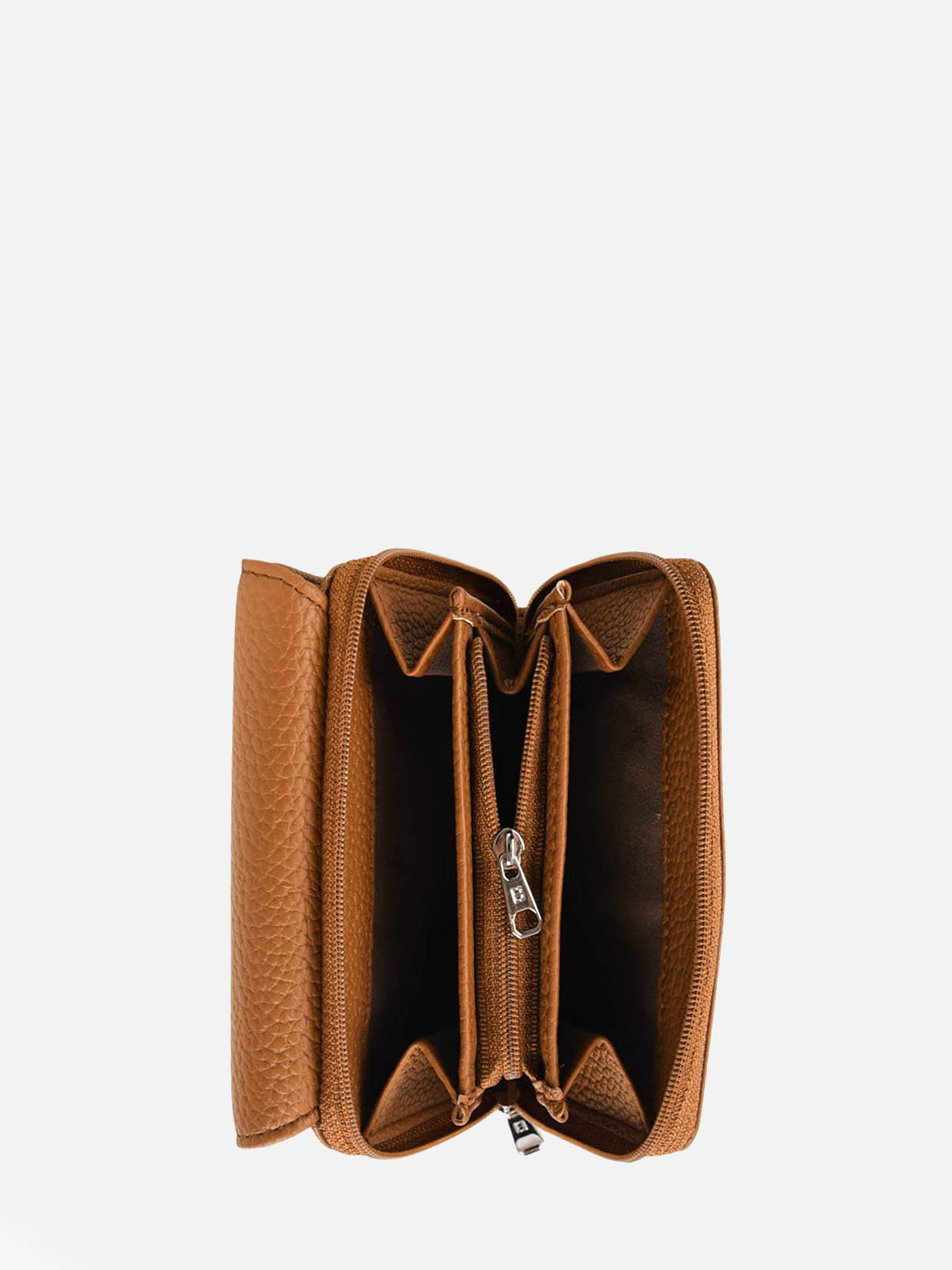 Praktische portemonnee uit de Madrid collectie van Hexagona met een gekorrelde leder look. Dit model bestaat uit twee delen. Het voorste deel sluit met een overslagflap en drukknopje, en beschikt over zes kaartvakken, twee vaste plastiekjes twee open vakjes en een gleuf voor cash. Het achterste deel sluit met rits en beschikt voer twee vakken gescheiden door een ritsvakje. In dit deel kunt u gemakkelijk uw muntstukken in opbergen.