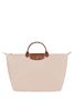 Deze grote 'Le Pliage' reistas uit ultralicht nylon beschikt over een leren overslagflap met drukknop. Z'n ruime formaat is ideaal om al uw reisspulletjes overzichtelijk op te bergen. De Le Pliage collectie van Longchamp is geïnspireerd op de Japanse kunst van origami, en zal u verrassen met z'n lichtheid en elegantie.
