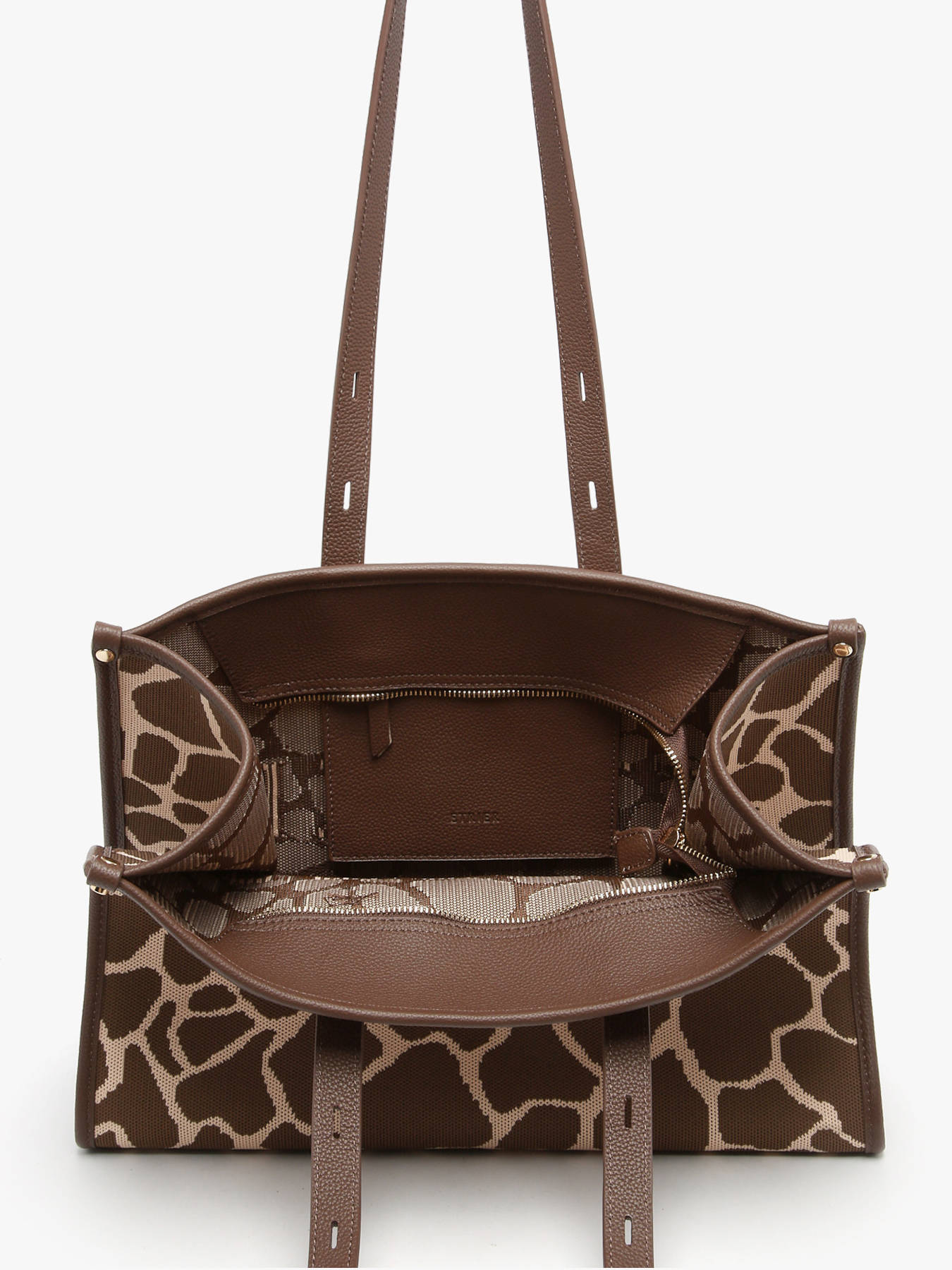 De schoudertas SAFARI van ETRIER herinterpreteert de iconische shopper in een gedurfde en uitgesproken modieuze versie. Gemaakt van textiel met leren afwerkingen, valt hij op door zijn grafische dierenprints die een sterke en hedendaagse stijl uitstralen. Ruim en functioneel, is het L-formaat ideaal om je zomerse dagen te begeleiden, zowel in de stad als tijdens uitstapjes. De hengsels van 28 cm zorgen voor comfortabel schoudergebruik, terwijl de ritssluiting je persoonlijke spullen veilig afsluit. Aan de binnenkant biedt een ritssluitingvak snelle toegang tot je essentials. Een praktische en stijlvolle shopper, ontworpen voor wie elegantie combineert met een wilde geest.